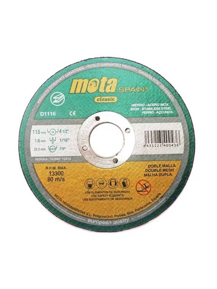 Disco de corte para metal – hierro – acero inoxidable. Medida: 4 1/2″ – 115 mm espesor 1.6 mm – Marca Mota – Pack x 10 unids